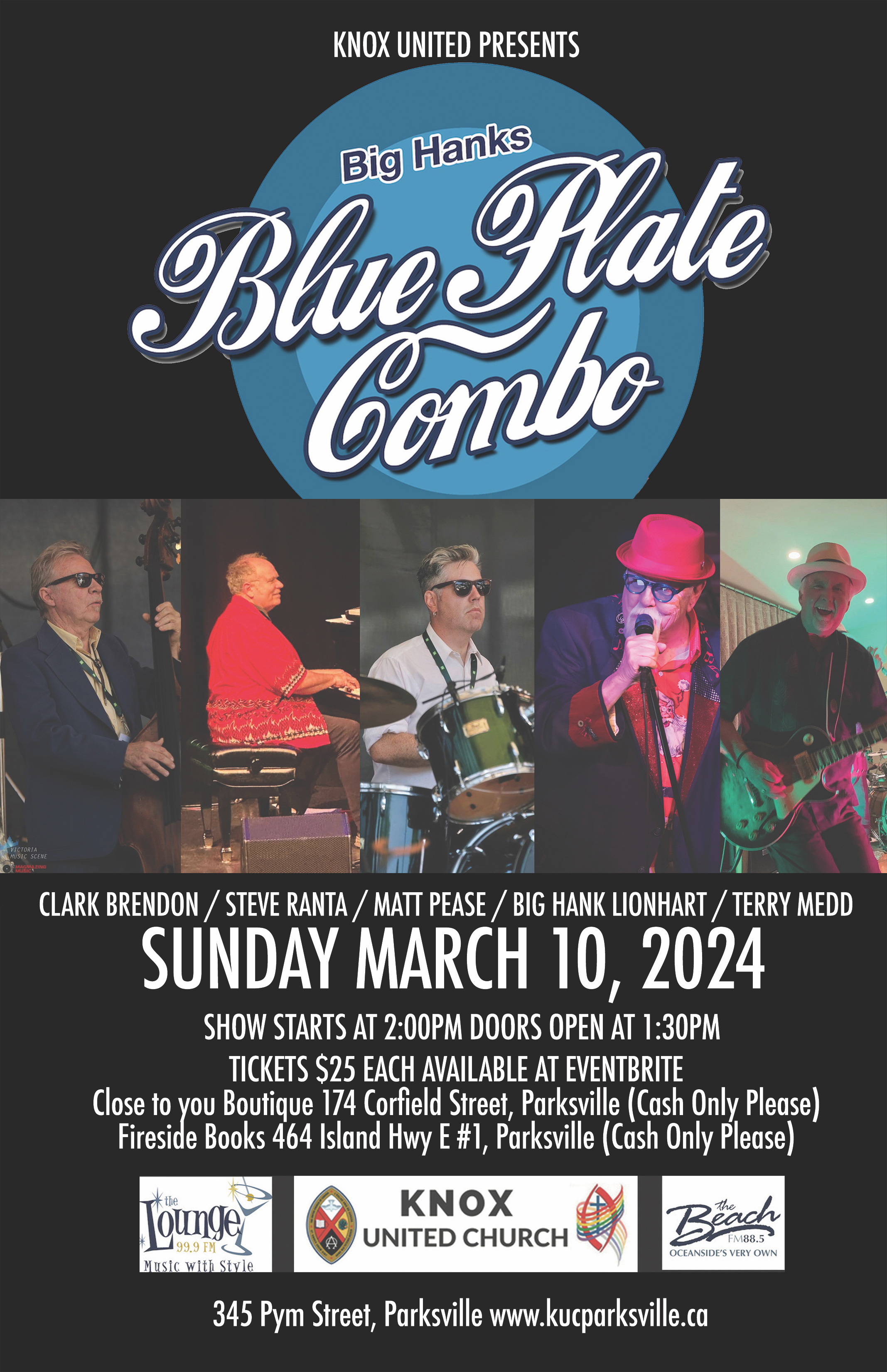 Tickets: $25 - available at Eventbrite https://www.eventbrite.ca/e/knox-presentsbig-hanks-blue-plate-combo-tickets-840544600527 also at Close to You Boutique - 174 Corfield Street, Parksville and Fireside Books - #1-464 Island Hwy., E. (cash only at these retail outlets please)