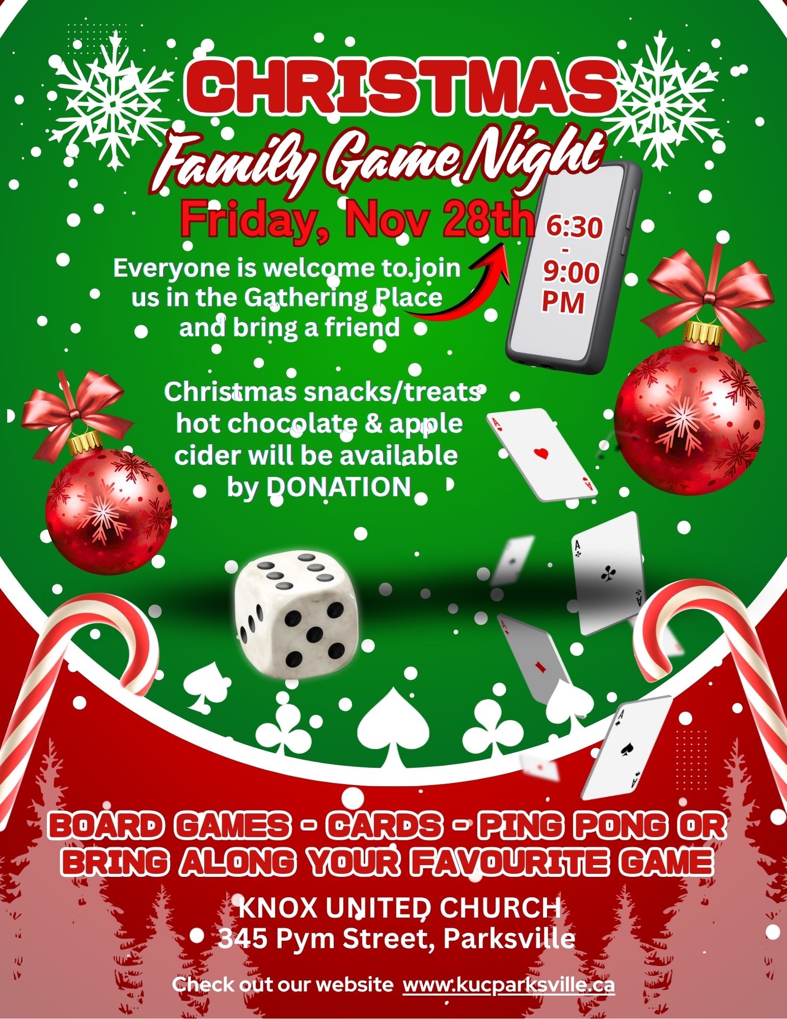 Everyone is invited to come and join us in The Gathering Place on Friday, November 28th from 6:30 - 9:00 p.m. BRING A FRIEND!
